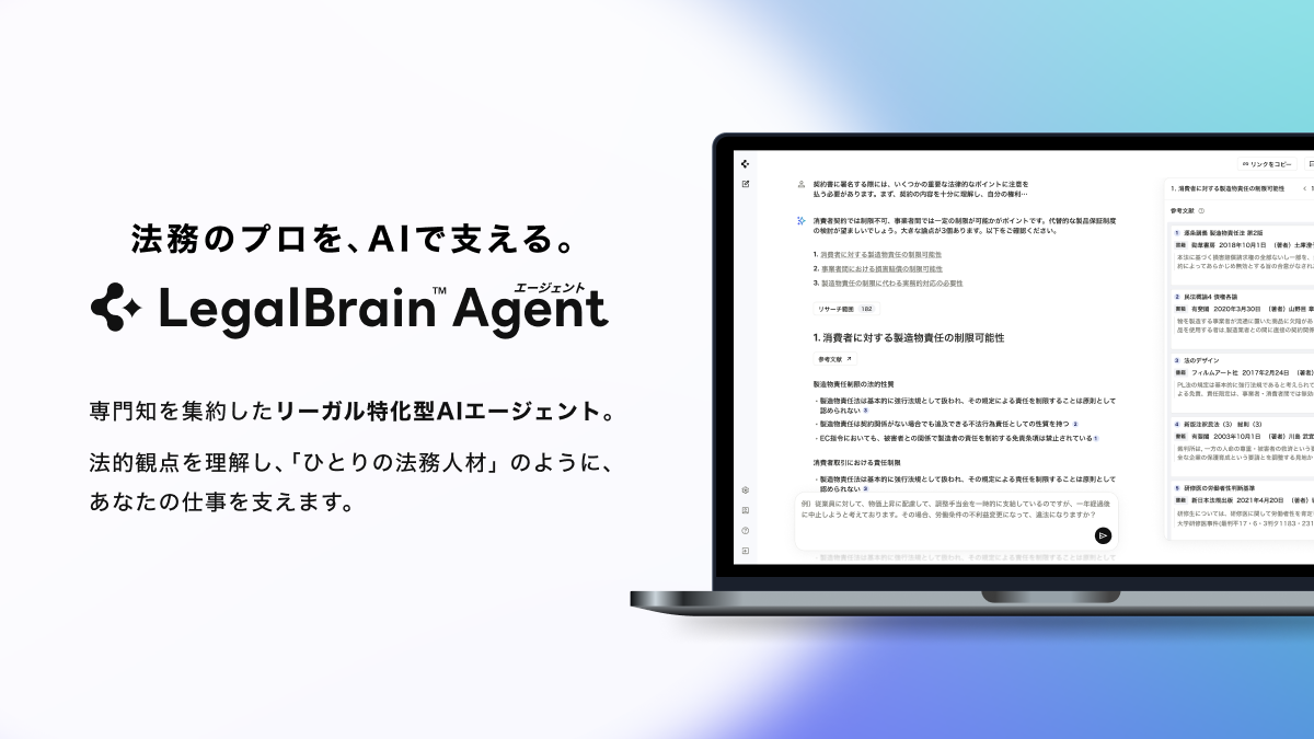 〜「Legal Brain エージェント」など3つのサービスで公開、AIによる実務判断をサポート〜