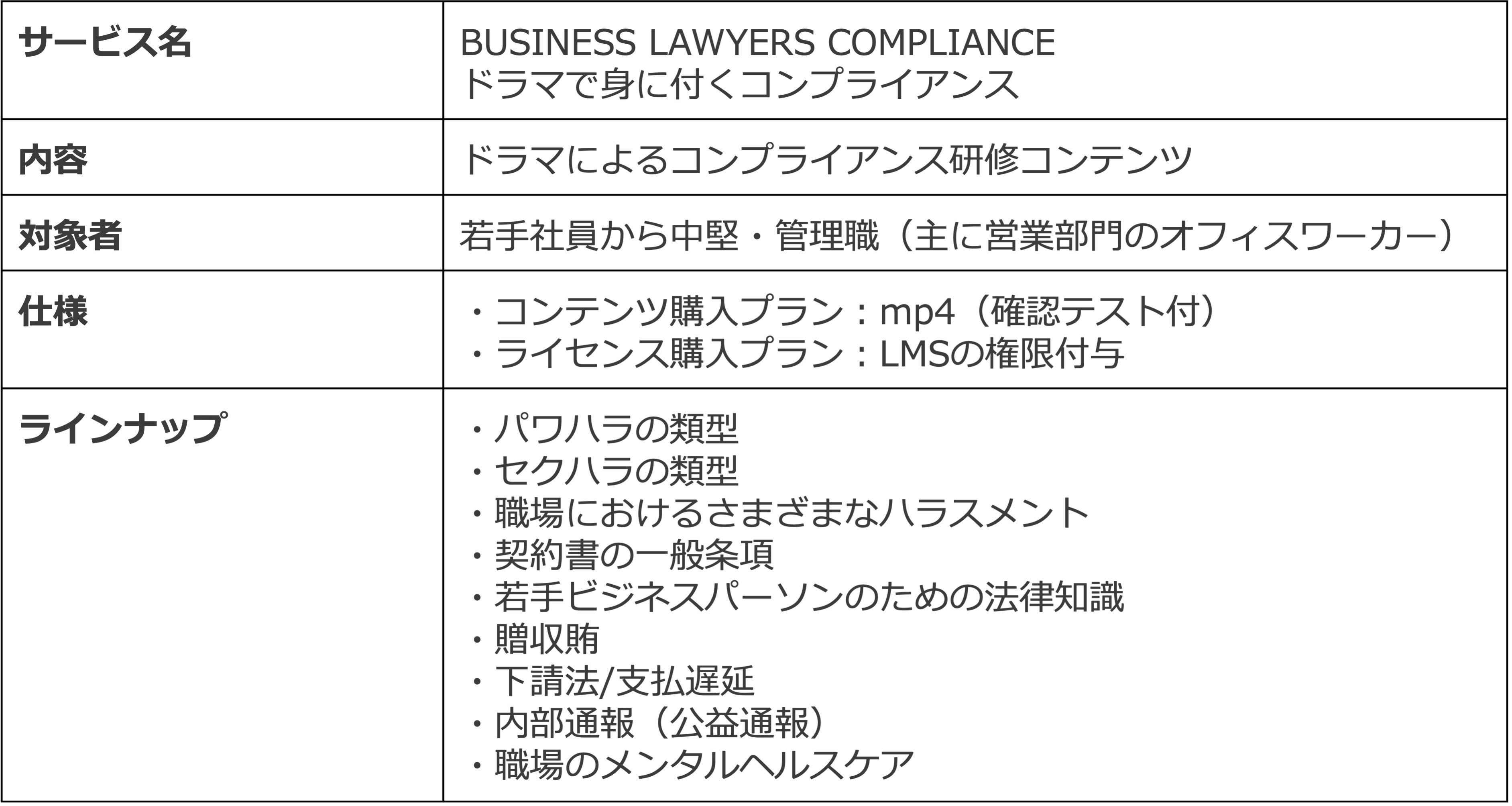 弁護士ドットコム株式会社(東京都港区、代表取締役社長:元榮 太一郎、以下当社)は、ドラマを活用した企業のコンプライアンス研修サービス「BUSINESS LAWYERS COMPLIANCE(ビジネスロイヤーズコンプライアンス)ドラマで身につくコンプライアンス」第3弾の提供を開始したことをお知らせいたします。