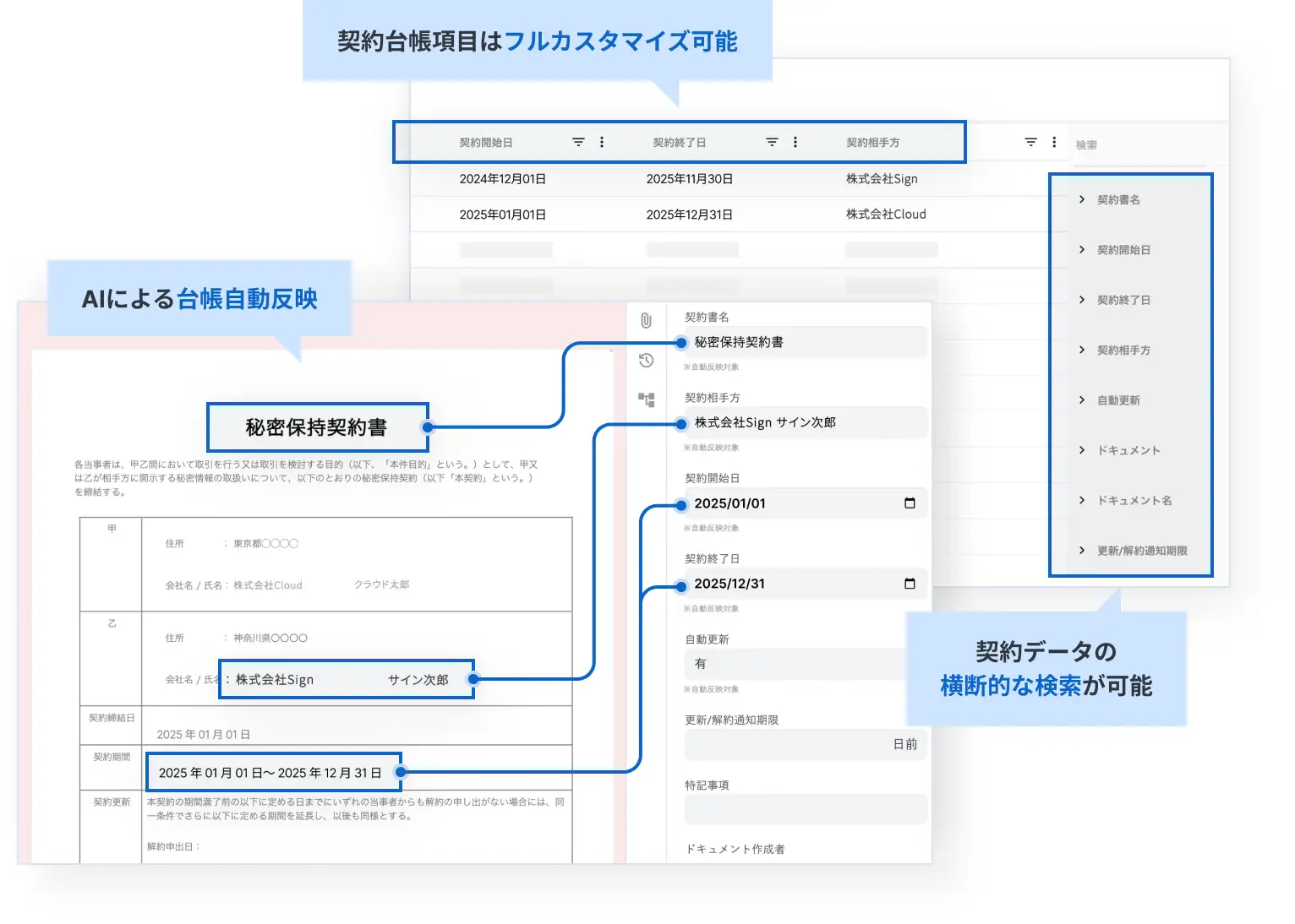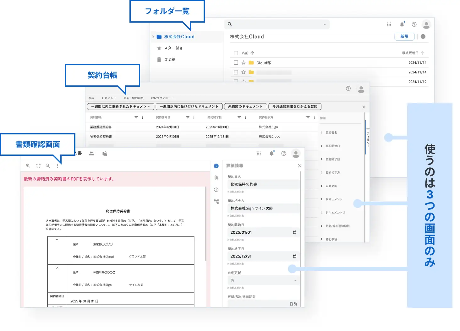 ①自動で契約台帳を作成し“契約管理”の手間を削減