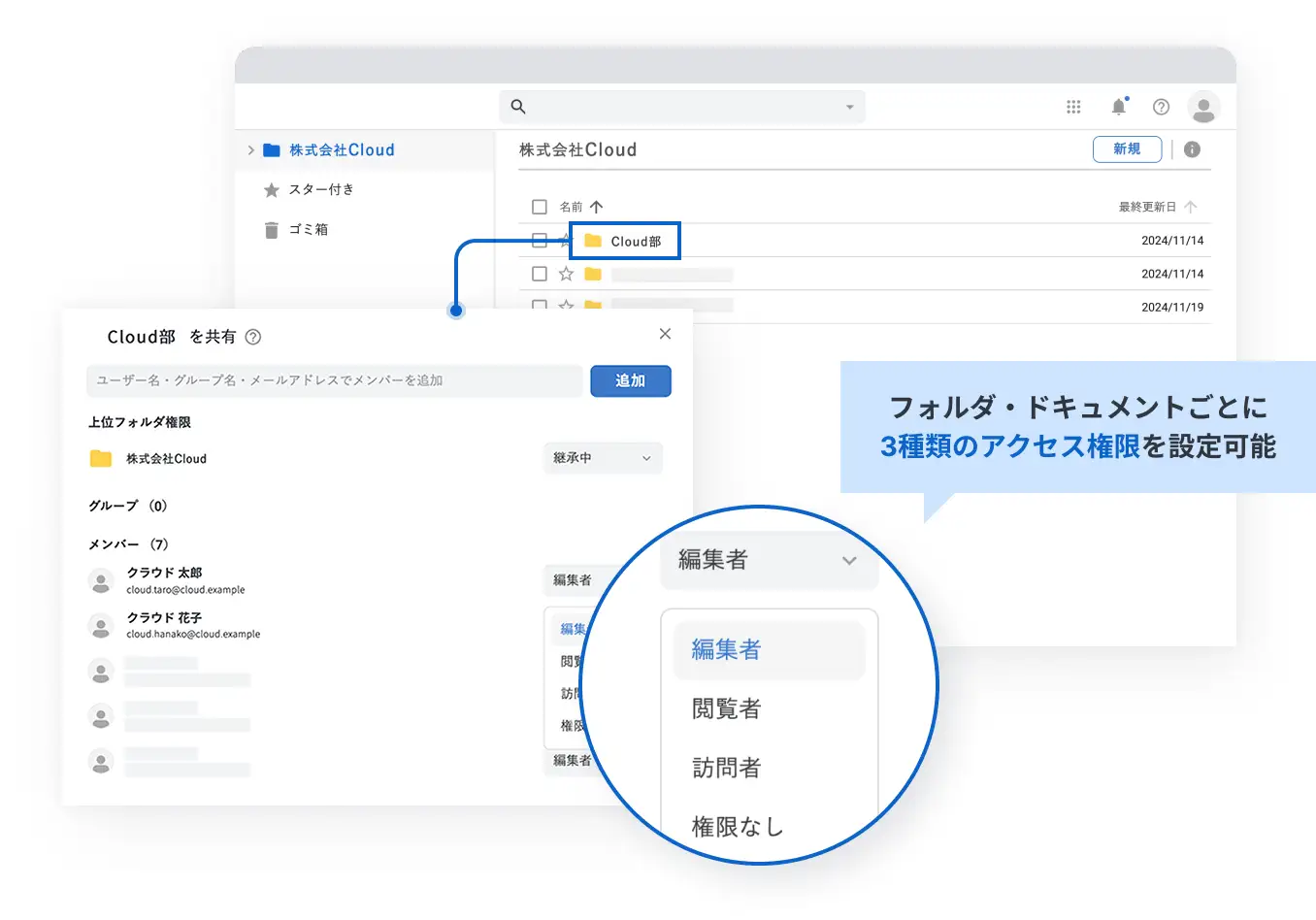 ②柔軟な権限設定で全社での情報共有を可能に