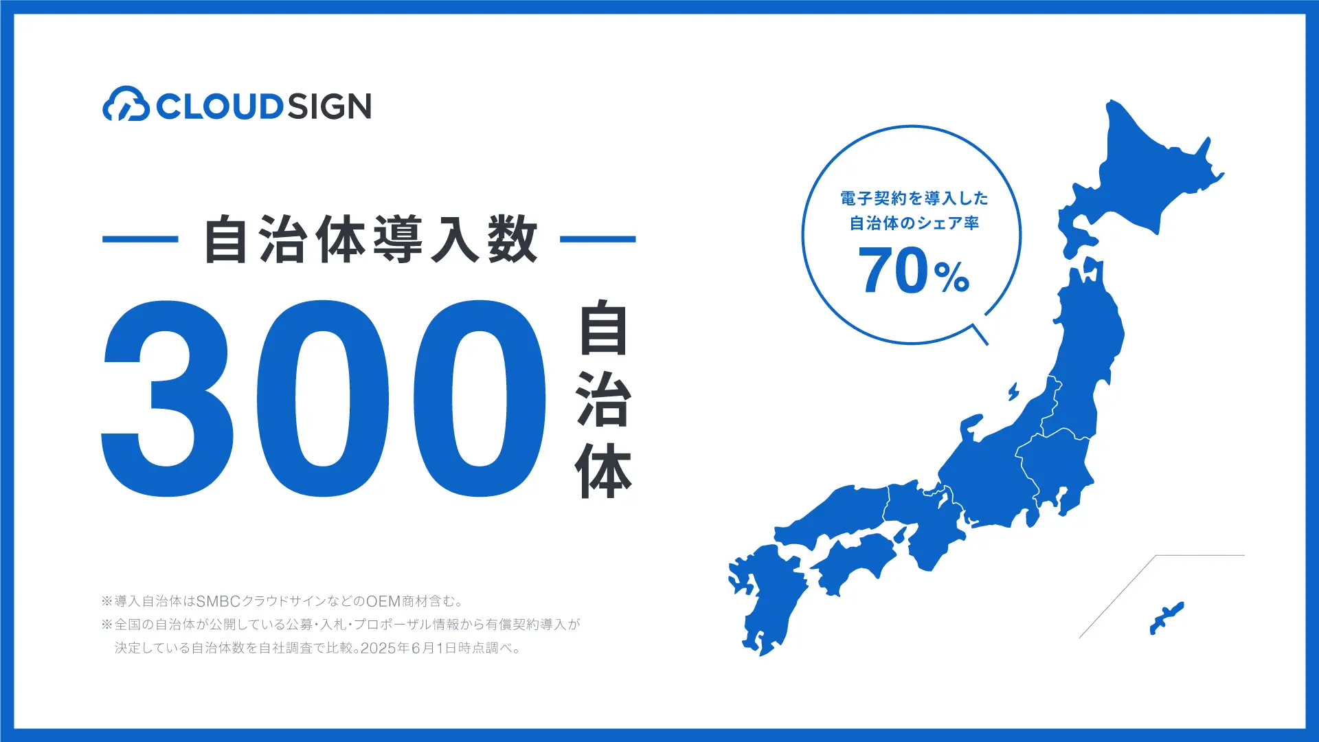 また、クラウドサインは、全国の自治体における導入シェア率は約70%※2となり、地方自治体における電子契約サービス導入数No.1※2の電子契約サービスとして、引き続き全国の電子