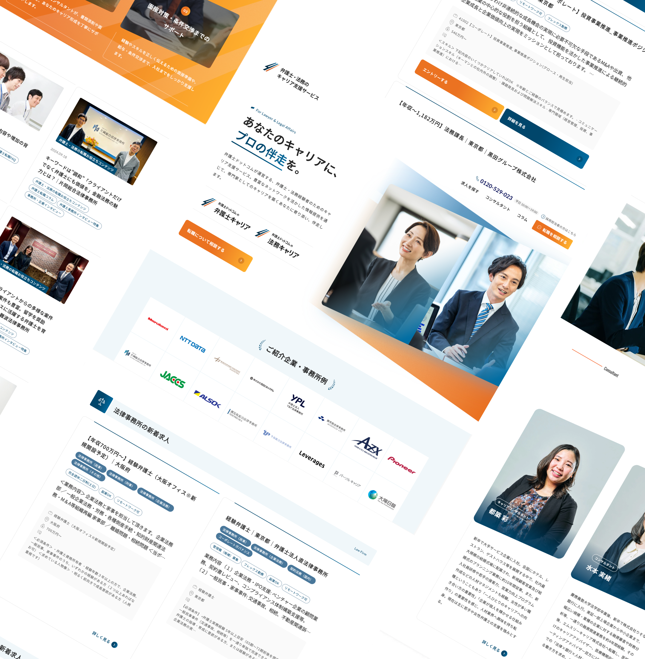 弁護士事務所とは「弁護士ドットコム」を通じて、また企業とは「BUSINESS LAWYERS」「クラウドサイン」を通じて築いた強固なネットワークにより、質の高い求人情報を豊富にご提供しています。