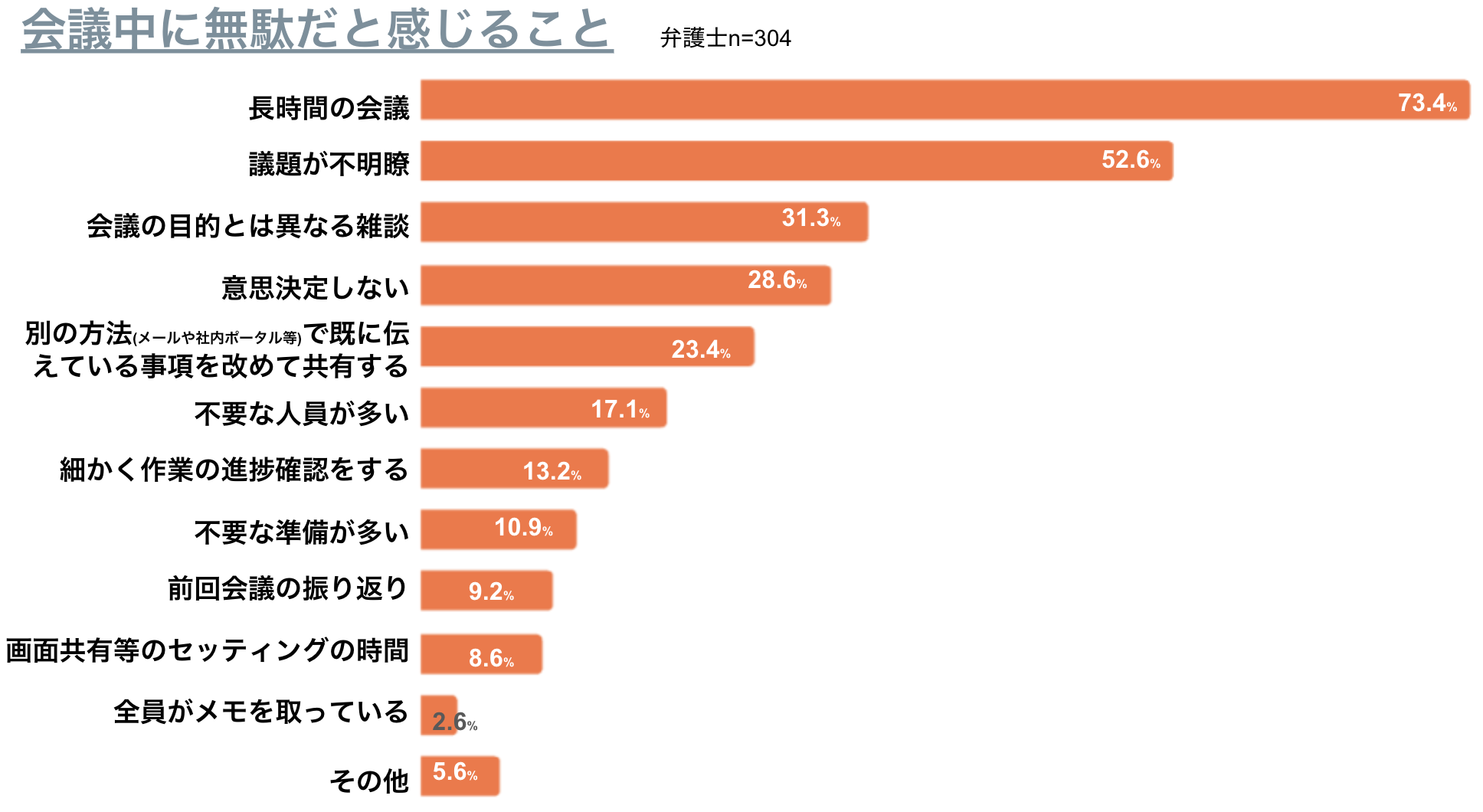 ●弁護士たちの間に、会議そのものにかかる時間を節約する意識がなく、コストについての意識がない
